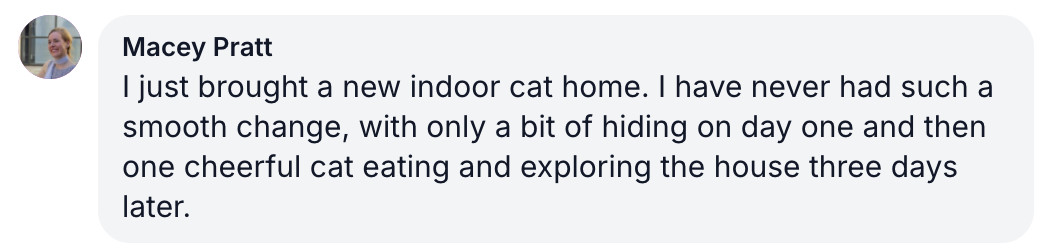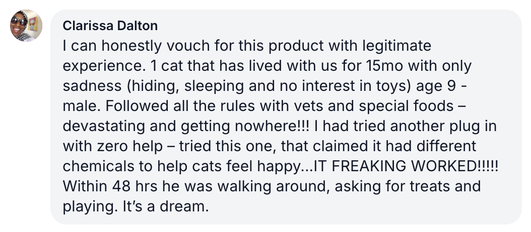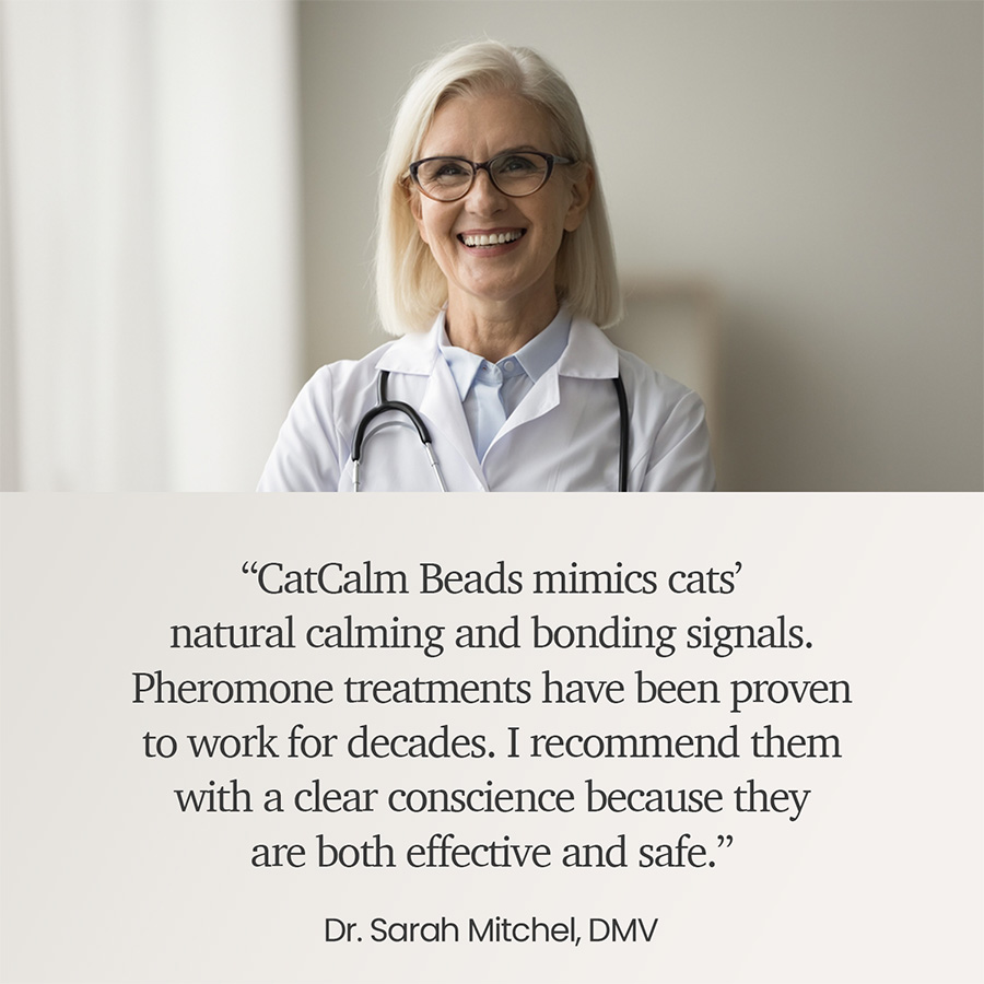 "In my 15 years as a veterinarian, I've had consistently great experiences with cat pheromones. They're completely natural, mimic cats' own calming signals, and have been clinically tested for over 30 years. I recommend them with a clear conscience because they're both safe and remarkably effective."
