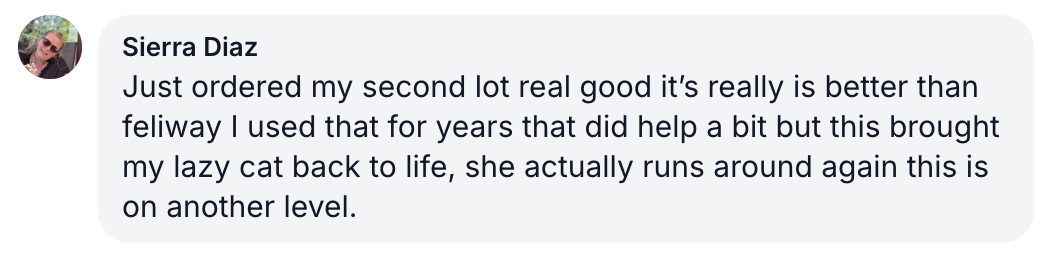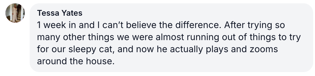 Spray 3 times daily on your cats’ favorite spots. Noticeable improvement in just 24 hours!
