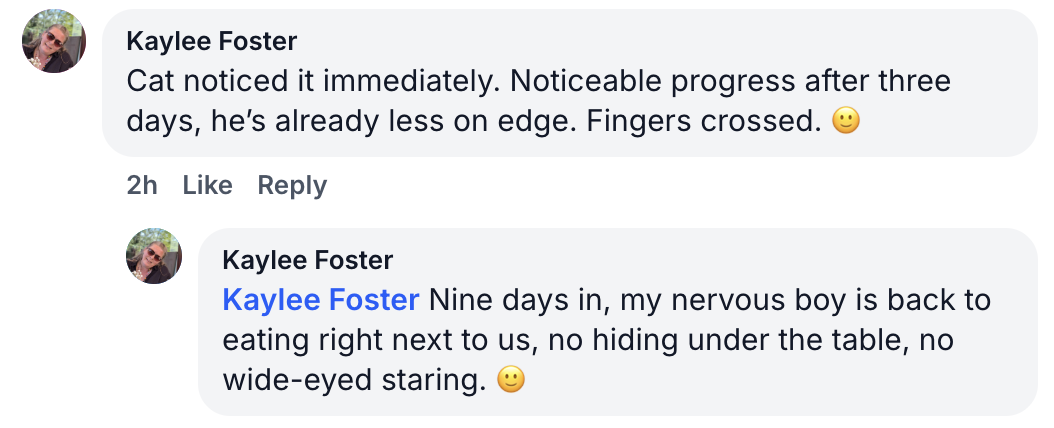 Most customers notice the first signs of improvement within 3 days — like less hissing, more tolerance, or fewer standoffs. By week one, the difference is usually clear. For long-term harmony, we recommend continuous use.
