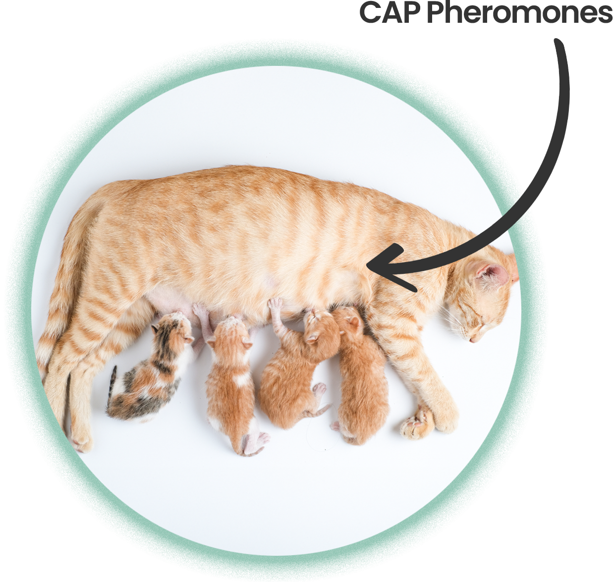 CatCalm Gentle opens both locks at the same time. It combines CAP—the mother pheromone that instantly creates a sense of group belonging—with F4, the friendship pheromone cats naturally release when they rub their face on someone they trust and like.